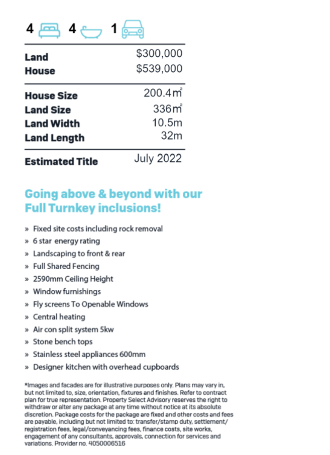 Disclaimer: The information in this document is collected from a number of sources and is dependent upon a variety of factors, while considered reliable at the time of publication no warranty in its completeness or accuracy is given or implied. The information is provided as general information only. No information contained in on page should be treated as real estate advice, legal advice, financial advice or tax advice. All investments involve risk and potential loss of money. It is recommended that you seek independent advice from the appropriate professional as your personal individual financial circumstances should be taken into account before you make any investment decision. Property In A Box, and related parties, researchers, authorized distributors, licensees, contractors and employees do not warrant or guarantee the performance of any investment made whether based on this information or otherwise. Property In A Box, and related parties disclaim any liability for your purchase and investment decisions. Images, examples and graphical or pictorial representation are for illustration purposes only. All prices and inclusions in this brochure are accurate based on information at time of completion, artist’s impressions may show inclusions not supplied within the purchase price. All turnkey packages are subject to local government and or development design guidelines approvals.